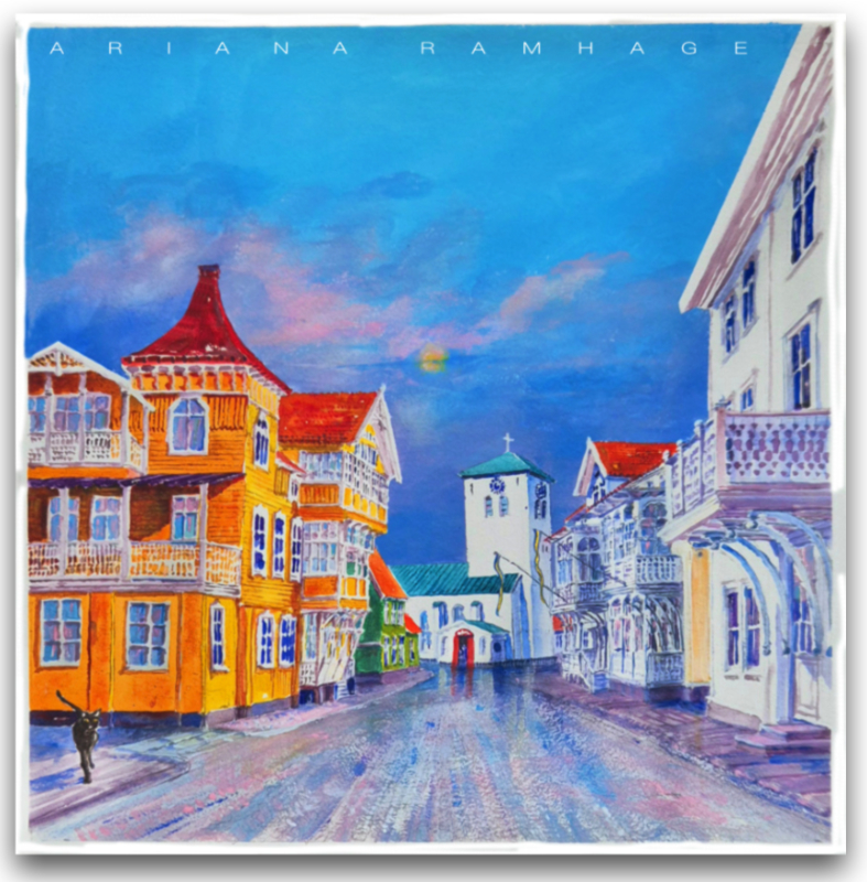 Målningen fokuserar på den klassiska arkitekturen med sina välbevarade trähus i pastellgult och vitt, där skuggspel och ljusreflektioner på gatans stenläggning ger bilden ett fantastiskt djup. En charmig detalj i förgrunden är den ensamma svarta katten, som ger motivet liv och en känsla av vardagsfrid mitt i den historiska miljön. Detta är ett verk för den som älskar Marstrands unika atmosfär och de bohuslänska kustpärlorna.